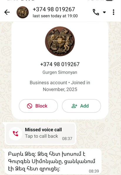 Կարճ ժամանակ անց նույն անձը զանգահարեց WhatsApp-ով։ Այս անգամ հարցերը ավելի թիրախային էին, իսկ իմ պատասխանները՝ արդեն կիսով չափ հեգնական։