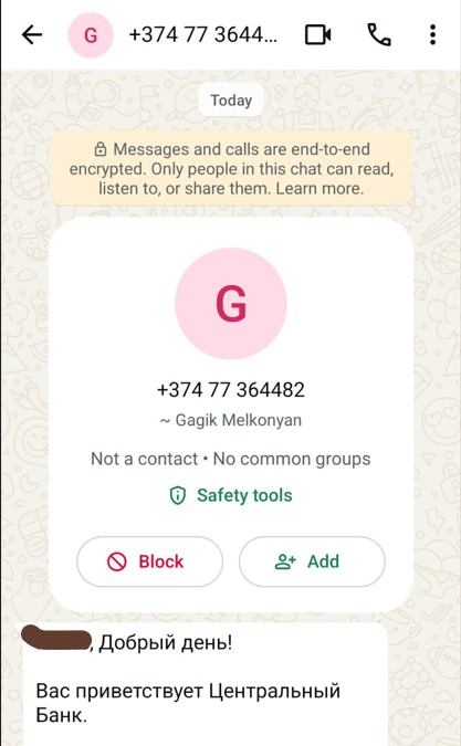 ՀՀ ՆԳՆ քրեական ոստիկանության կիբերհանցագործությունների դեմ պայքարի վարչության պետ, ոստիկանության փոխգնդապետ Հայկ Մկրտչյանի խոսքով՝ վերջին շրջանում հատկապես տարածվել են դեպքերը, երբ հանցագործները WhatsApp-ում և սոցիալական ցանցերում ներկայանում են պետական կառույցների, մասնավորապես՝ Ազգային անվտանգության ծառայության, ոստիկանության, կենտրոնական բանկի ներկայացուցիչների անունից։ ՆԳՆ-ում արդեն գրանցվել է նմանատիպ շուրջ 30 դեպք։