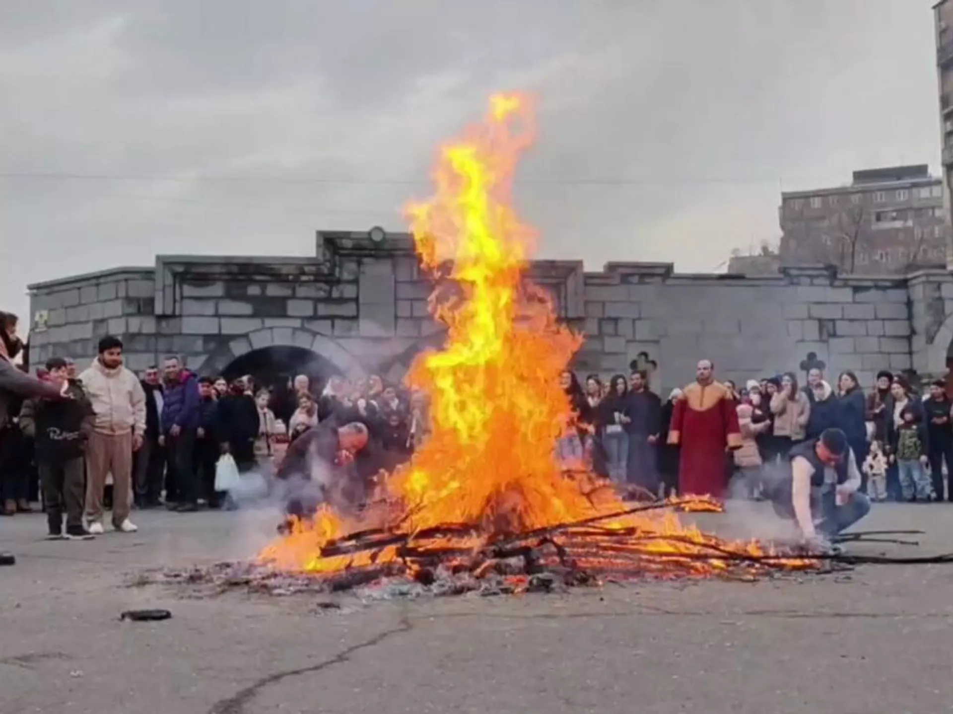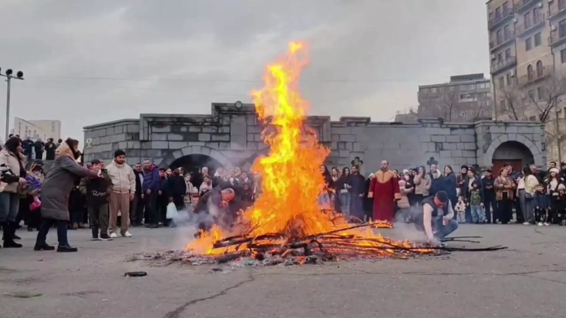 Հայ առաքելական սուրբ եկեղեցիների բակերում վառվել են Տեառնընդառաջի խարույկները։ Sputnik Արմենիայի տեսանյութում երևում է, թե ինչպես են երիտասարդները շուրջպար բռնել Սուրբ Գրիգոր Լուսավորիչ եկեղեցու բակում և ցատկում կրակի վրայով։Հայ առաքելական եկեղեցին ամեն տարի փետրվարի 14-ին՝ Քրիստոսի սուրբ ծննդյան օրվանից 40 օր հետո, նշում է քառասուն օրական մանուկ Հիսուսին տաճարին ընծայաբերելու տոնը՝ Տեառնընդառաջը։Տոնի նախօրեին` երեկոյան ժամերգությունից հետո, կատարվում է նախատոնակ: Այն ավետում է Տերունի տոնի սկիզբը: Սովորաբար նախատոնակի արարողության ավարտին կատարվում է Անդաստանի արարողություն, որի ընթացքում օրհնվում են աշխարհի չորս ծագերը: Անդաստանին հաջորդում է մոմերի օրհնության արարողությունը: Եկեղեցու կանթեղներից վերցված կրակով եկեղեցիների բակերում վառվում են խարույկներ` իբրև Քրիստոսի լույսի խորհրդանիշ:Տեառնընդառաջի կրակի խորհուրդը․ ազգագրագետը` ձևի ու բովանդակության սահմանագծի մասին