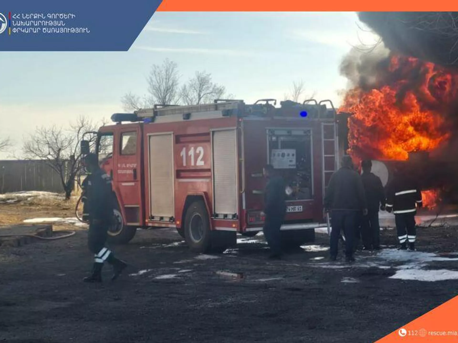 Նախնական տվյալներով` այրվում են պահեստային բաքերը և մեկ բեռնատար ավտոմեքենա։ Իրականացվում է հրդեհաշիջում։